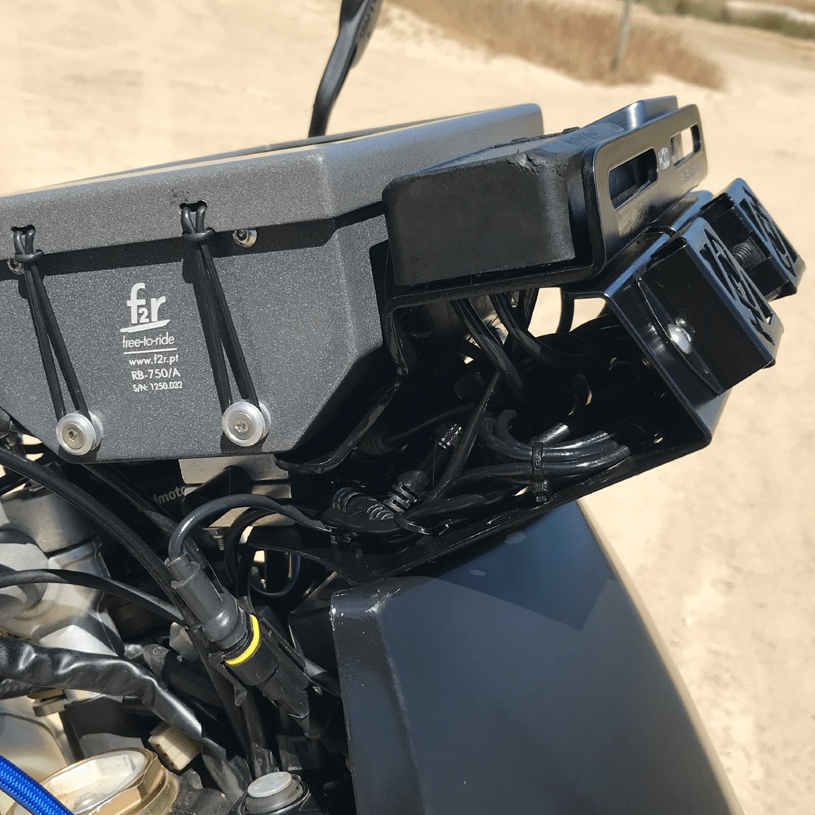 This protection bracket fits on the Roadbook bracket (RMS002 or H3D010), providing accommodation and protection for GPS antennas, PB001, and all wiring.